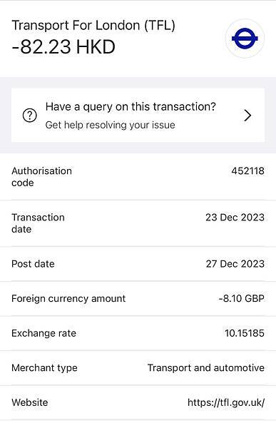 加值後每次從oyster card中扣款